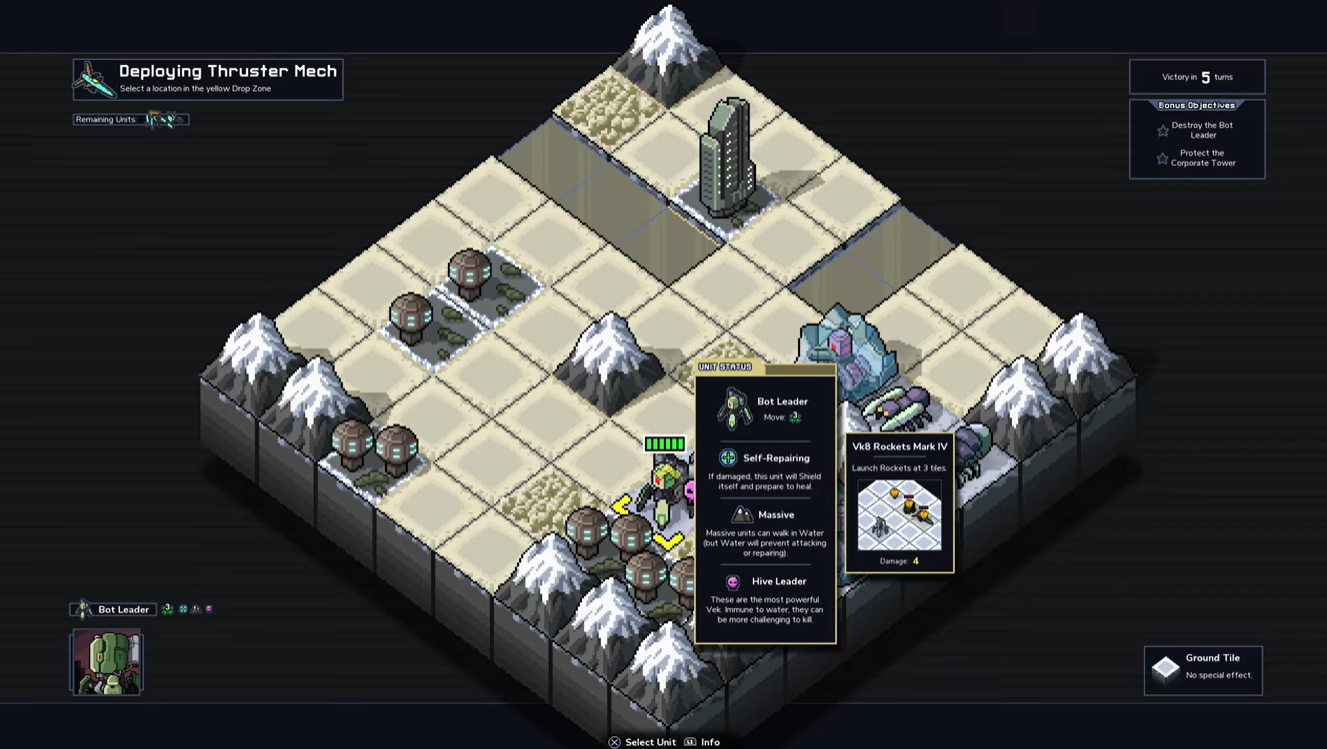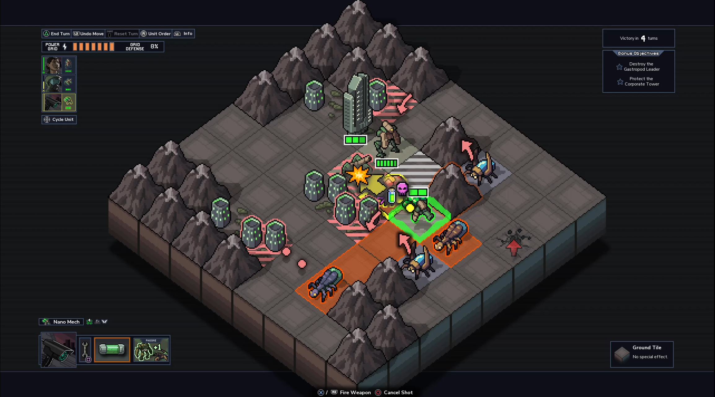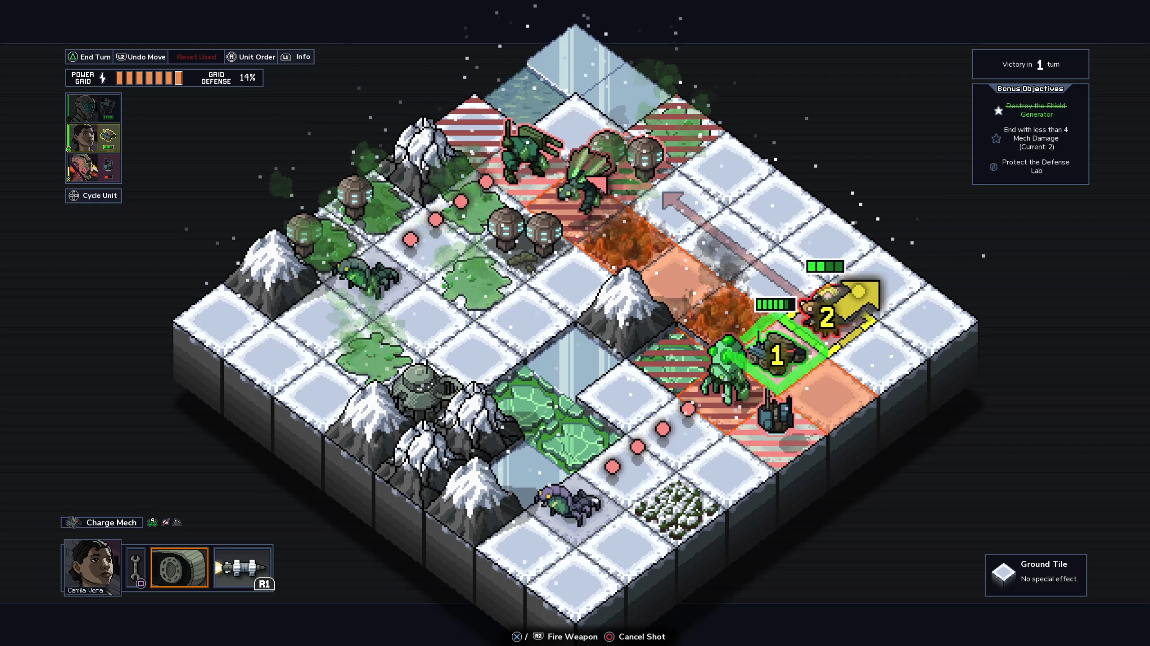 I went with the defend the tanks mission and started regretting it immediately. The tanks start dormant and have 1 HP, I forgot that... This mission with the Hazardous Mechs is like tossing a group of toddlers into a fine art museum expecting them not to break anything of value. I spent a long time on this one.