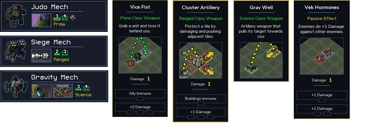 Vice Fist - Good Vek movement, but not a lot of damage and can be awkward to use at times.