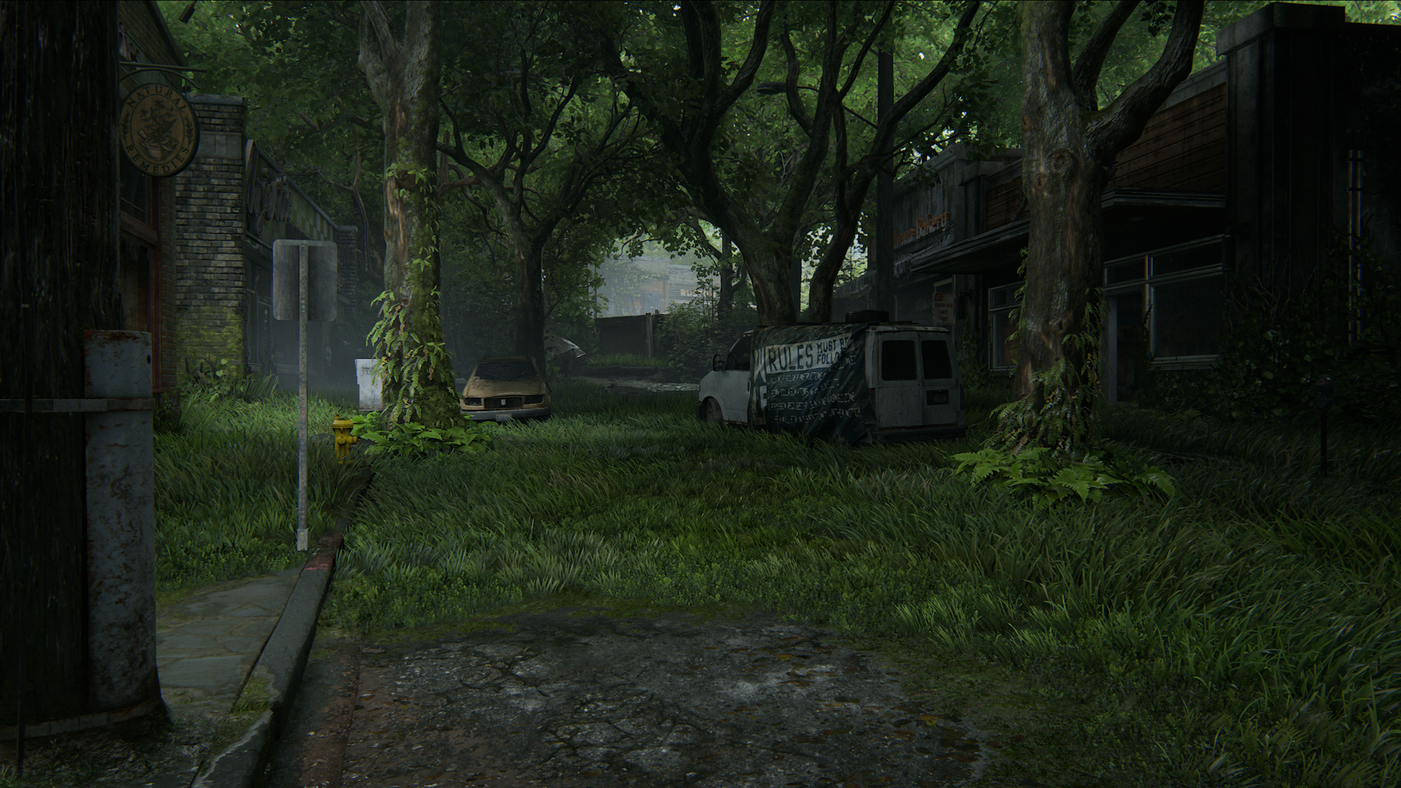 Seattle Day 1 is Ellie's journey into the city with Dina. Overall, I really liked Day 1. Dina and Ellie are fun together, as they have a bunch of cute interactions not so subtly hinting at their budding interest in each other. I think The Last of Us games work best when there's a meaningful relationship on screen. The gameplay is varied with some light traversal puzzles, a semi-open world section, a horrific underground/infected combat focused area, and plenty of exploration. The introduction to the visual marvel that is overgrown, apocalyptic Seattle is glorious. Nature has consumed the cityscape, ivy pours through every window, grass heavily encroaches on every street's tarmac, water has broken down the foundations of entire city blocks.