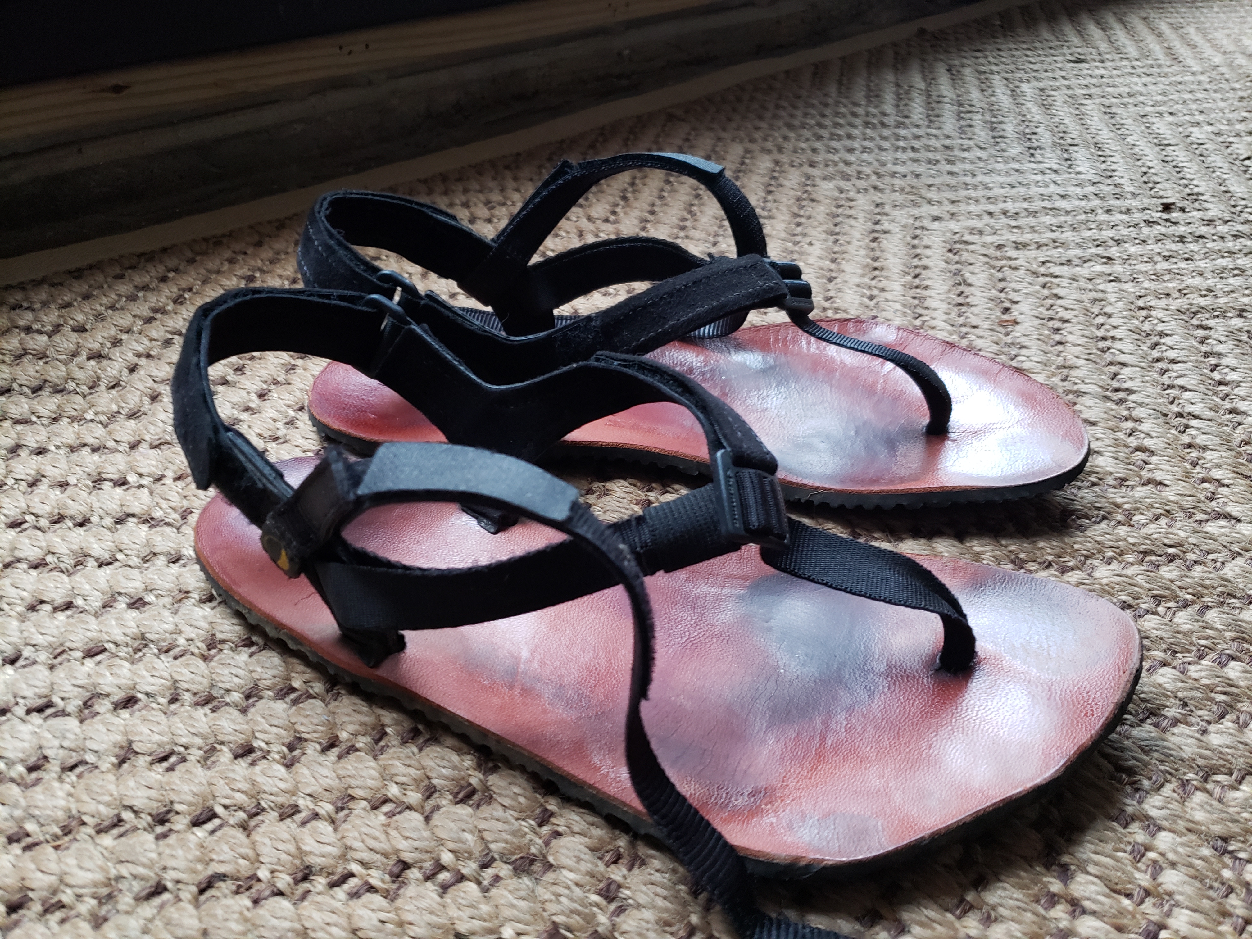 3 mm, leather huarache-style running sandals. My feet have never felt better than in the last year.
